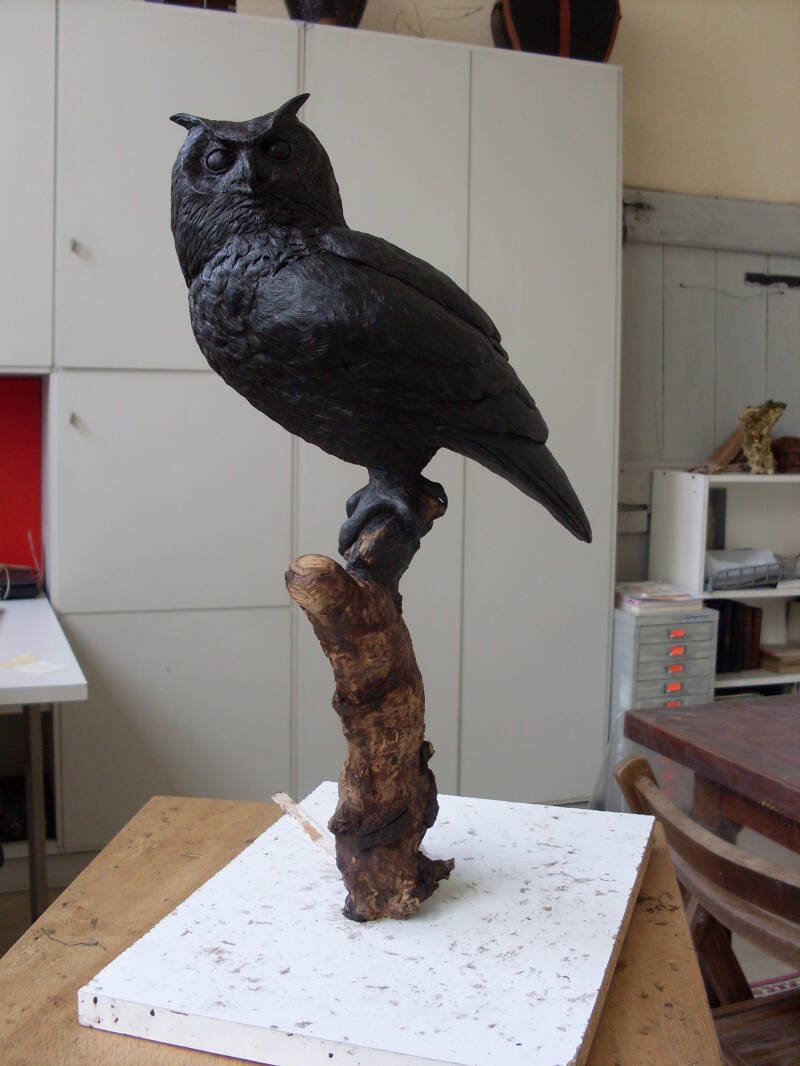 Prijzen reproductie van de bronzen beelden ca. 1000-2000 Euro Uil: l. .20 cm Nar : h. 57 cm)